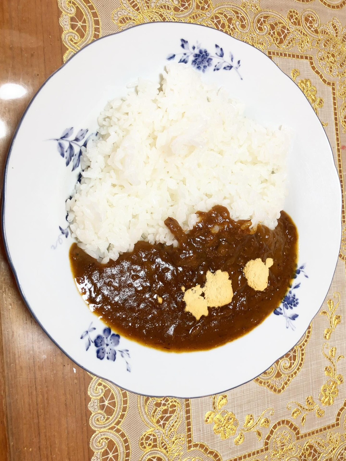 今日は、レトルトカレーということで、カレールーに黒酢粉末を入れて食べました。